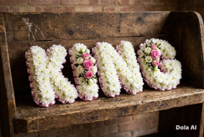 Beautifully based in white chrysanthemums available in any lettering and colour